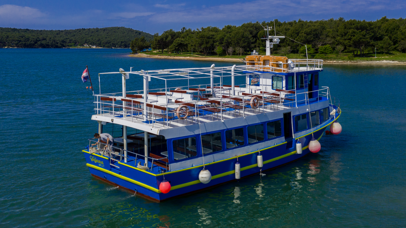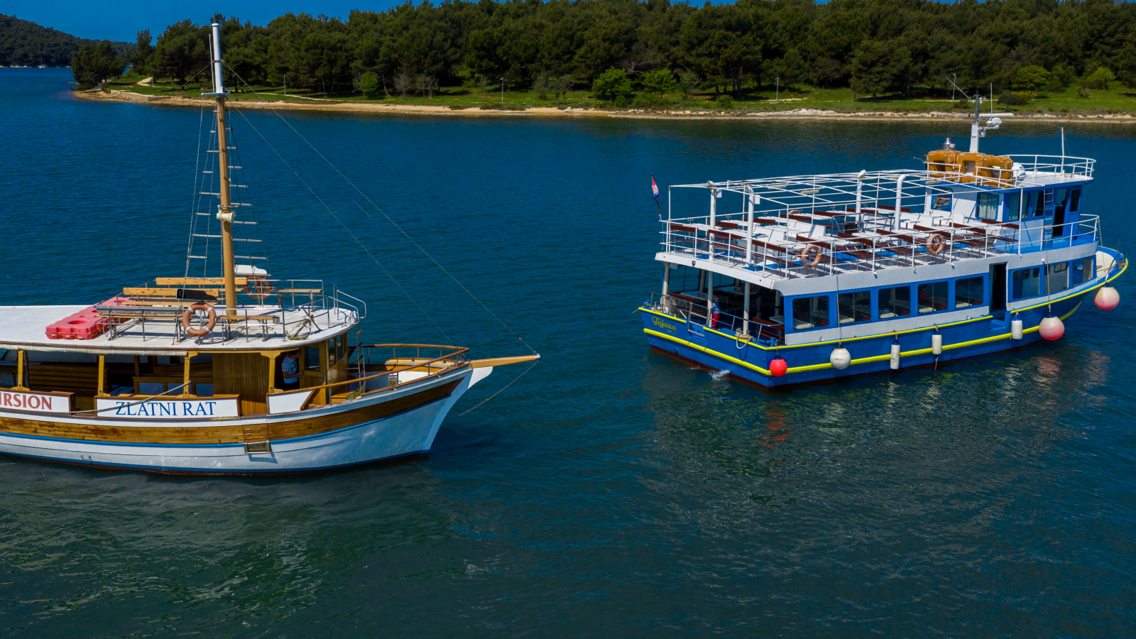 • Check-in shall is 30 minutes before the departure of the ship. Meet at the port of Medulin. Look for a large blue parasol and a large advertising desk in the form of a boat.